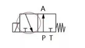 2、识别常态位。电磁阀都有两个或两个以上的工作位置,其中一个为常态位,即阀芯未受到操纵力时所处的位置。利用弹簧复位的二位阀是以靠近弹簧的方框内的通路状态为其常态位。对于三位阀,图形符号中的中位是常态位。绘制系统图时,油路/气路一般应连接在换向阀的常态位上。